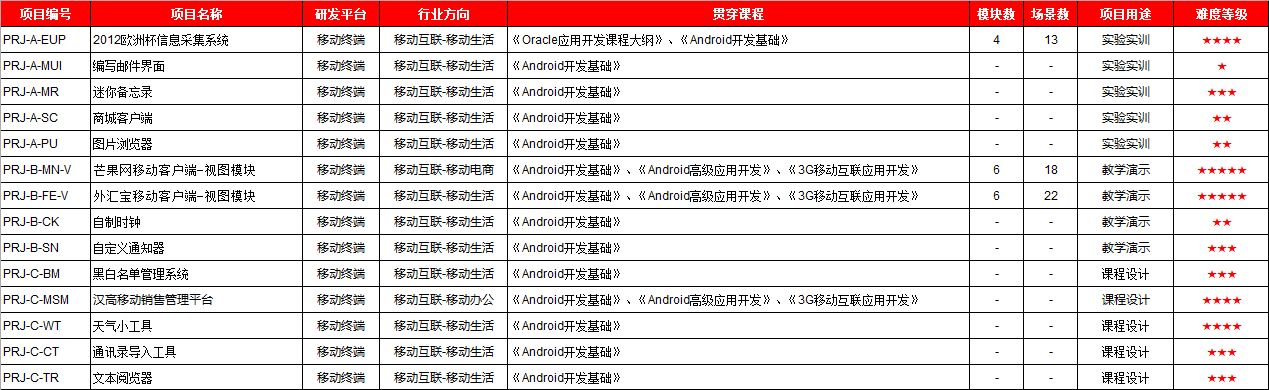 培养学员基于Oracle-Android UI设计和存储技术的开发技能与开发思想,培养具有移动客户端应用图形用户界面的基本开发和设计能力: