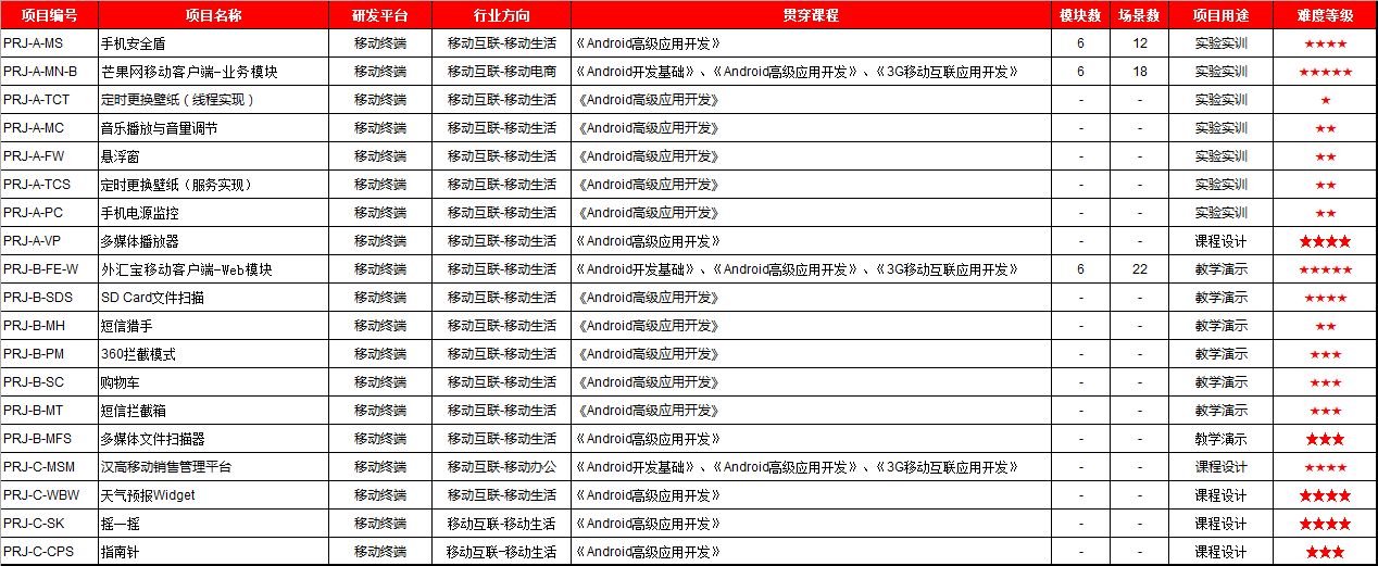 培养学员基于Oracle-Android 核心组件、多媒体技术和传感器的开发技能,使学员基本较为完善的Android研发知识结构和知识体系。